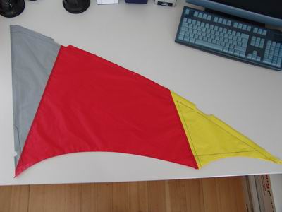 Die schwarzen Linien auf den Stoffpaneelen selbst sind übrigens die übertragenen Kanten der Verstärkungen beziehungsweise Dacron-Leitkanten.